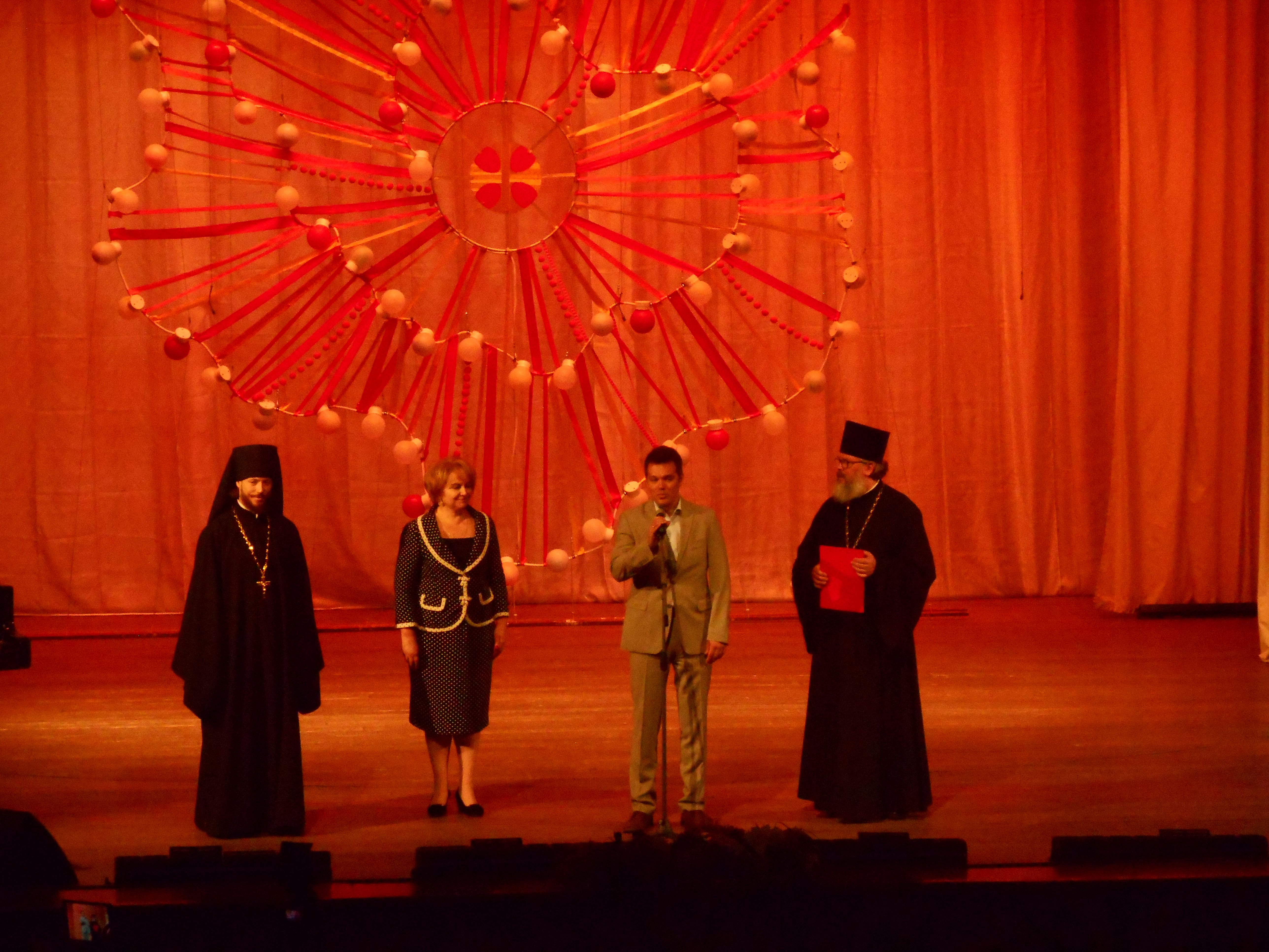 | 15 мая 2016г. | В ДК "Москворечье" прошёл Детский благотворительный фестиваль Центрального и Южноко викарианств "Пасха Красная" где были представлены работы прикладного творчества наших получателей соц. услуг. С приветственными словами к участникам и гостям заключительного концерта фестиваля обратились Депутат Московской городской Думы, Директор Психоневрологического интерната №30, кандидат медицинских наук Алексей Валентинович Мишин; Член Общественной Палаты Российской Федерации, кандидат на пра̀ймериз по выборам в депутаты Государственной Думы Российской Федерации, директор школы «Наследник» Любовь Николаевна Духанина; Председатель Отдела религиозного образования и катехизации Московской городской епархии иеромонах Онимсим (Бамблевский) и настоятель храма Живоначальной Троицы в Чертанове, Председатель Оргкомитета Детского благотворительного фестиваля «Пасха Красная» прот. Константин Сопельников. |
