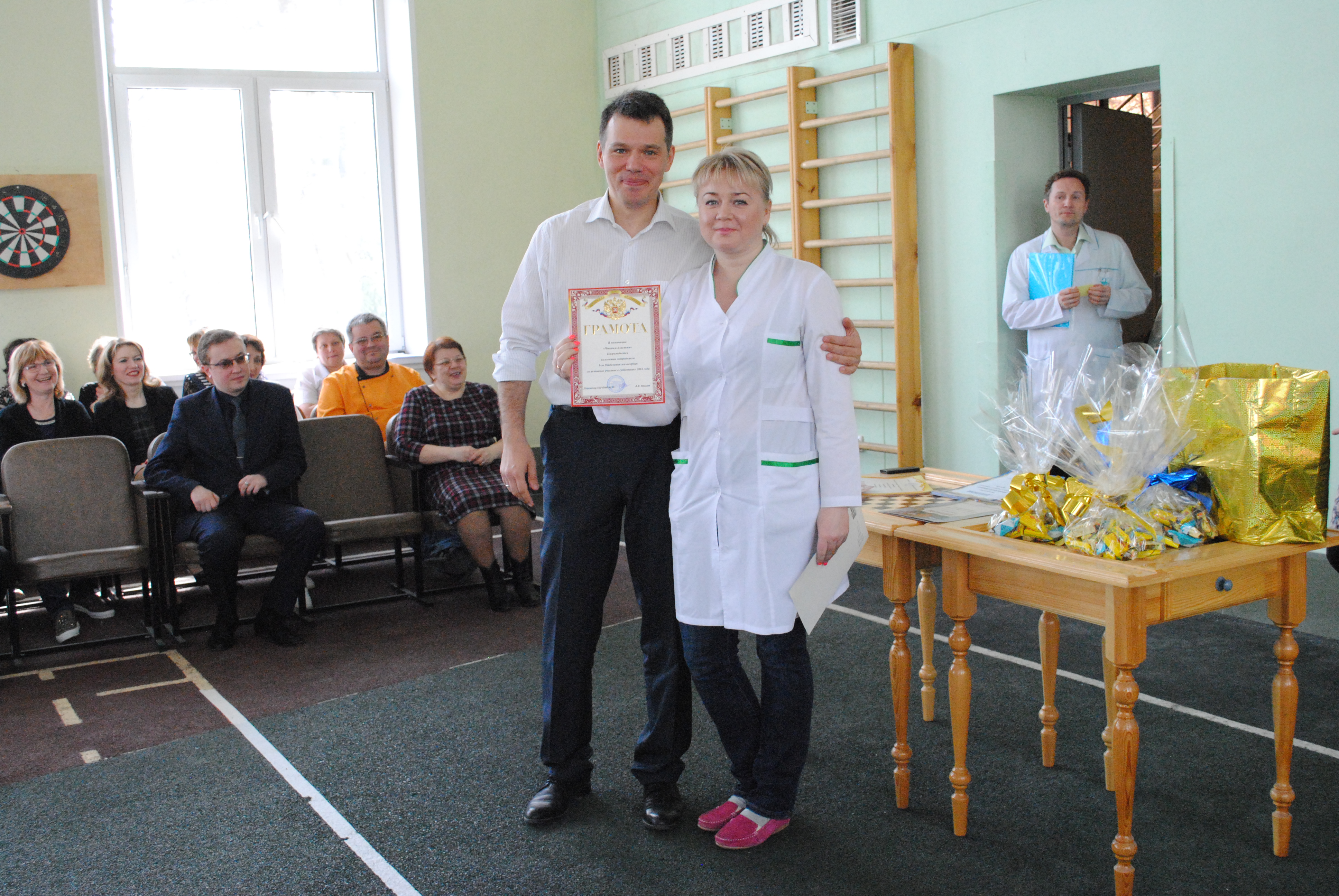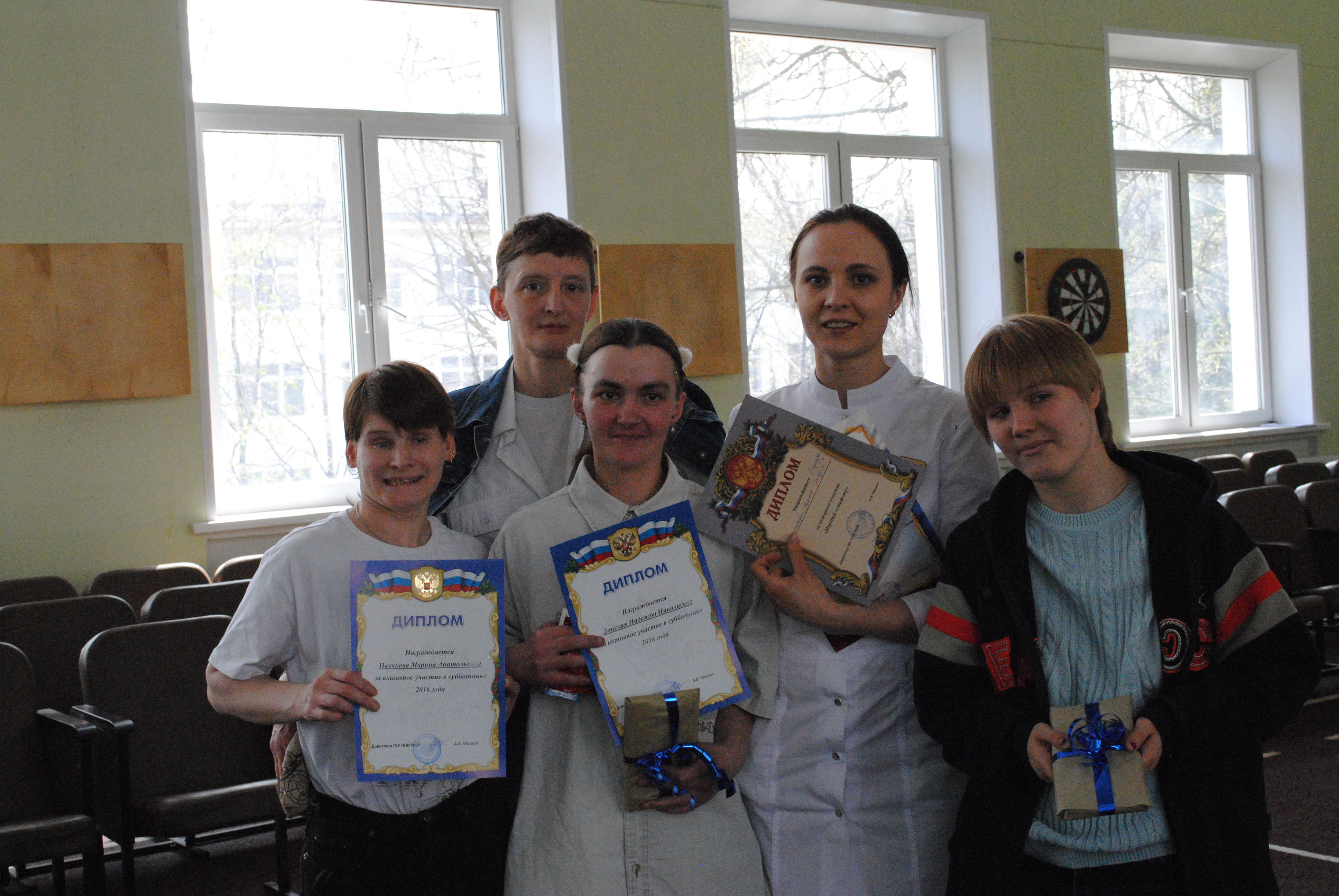 | 15 марта 2016г. | От Департамента труда и социальной защиты населения города Москвы получили почётные грамоты и благодарности: Свирина Надежда Алексеевна - бухгалтер; Шилова Елена Анатольевна - инструктор производственного обучения; Шмелёва Мария Николаевна - медицинская сестра; Щеулова Наталья Алексеевна - сестра-хозяйка; Язова Бахар Атаджановна - медицинская сестра. Коллектив сотрудников ГБУ ПНИ № 30 поздравляет с наградами и желает дальнейших успехов в работе! |