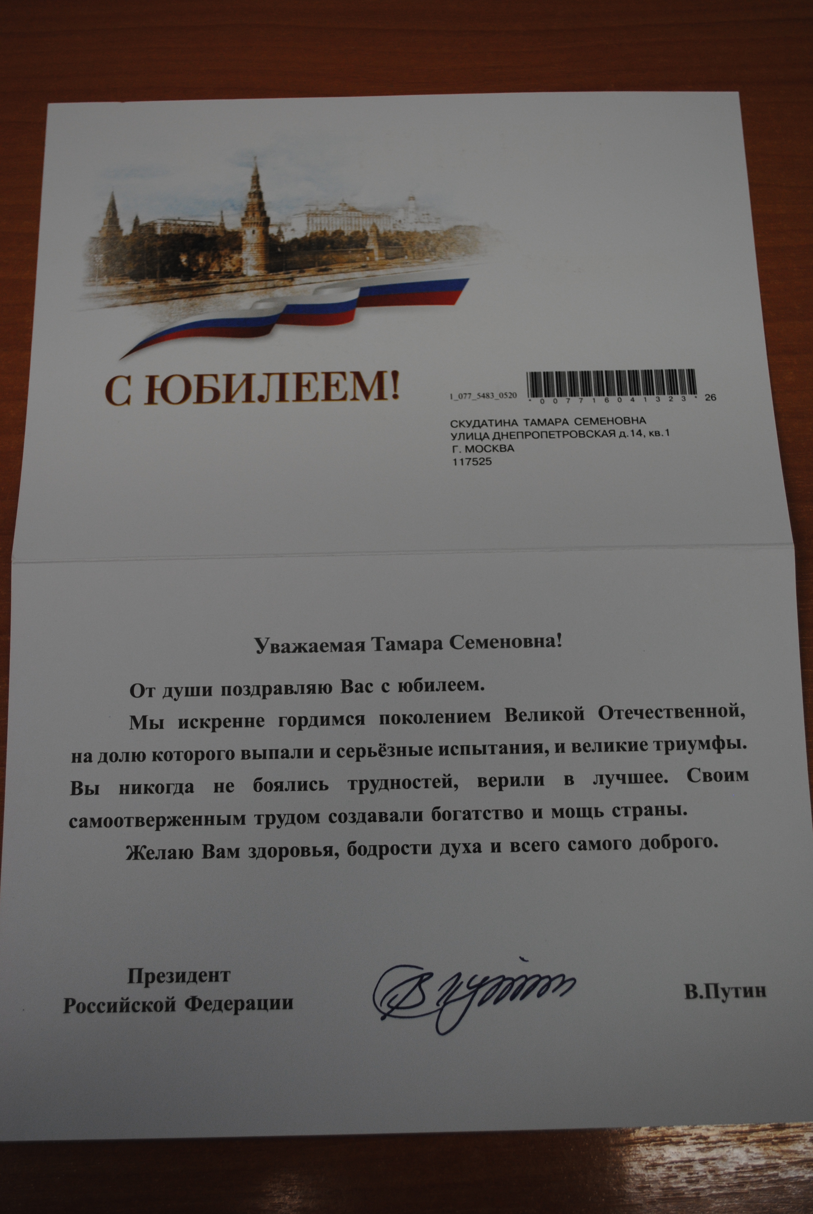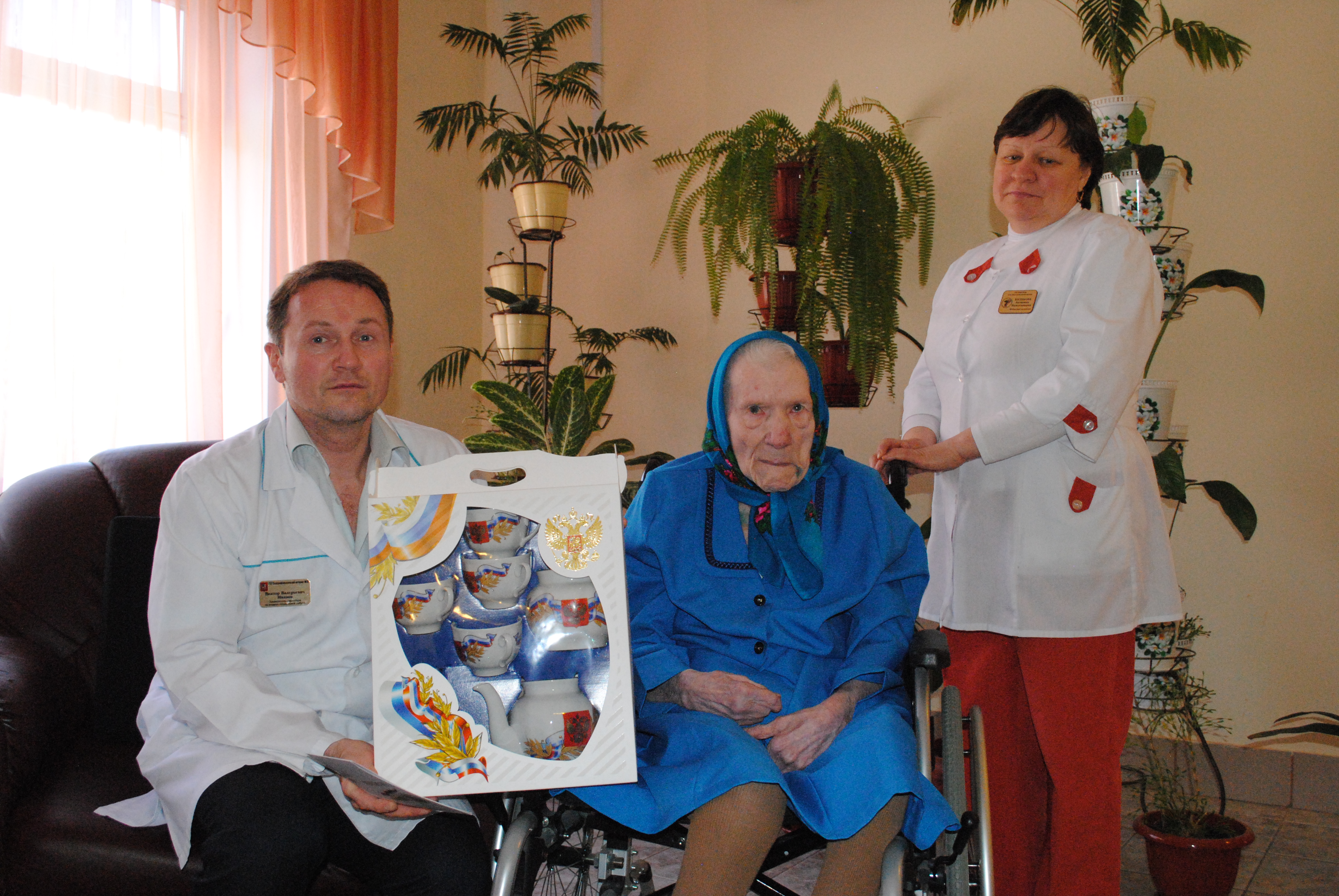 | 26 марта 2016г. | Нашему получателю соц. услуг Тамаре Семёновне Скудатиной исполнилось 90 лет! От имени Президента Российской Федерации её поздравил заместитель директора по медико-социальной работе Иванов В.В. и ансамбль "Пересвет" ГБУ ПНИ № 30. Желаем Тамаре Семёновне здоровья и долгих лет жизни! |
