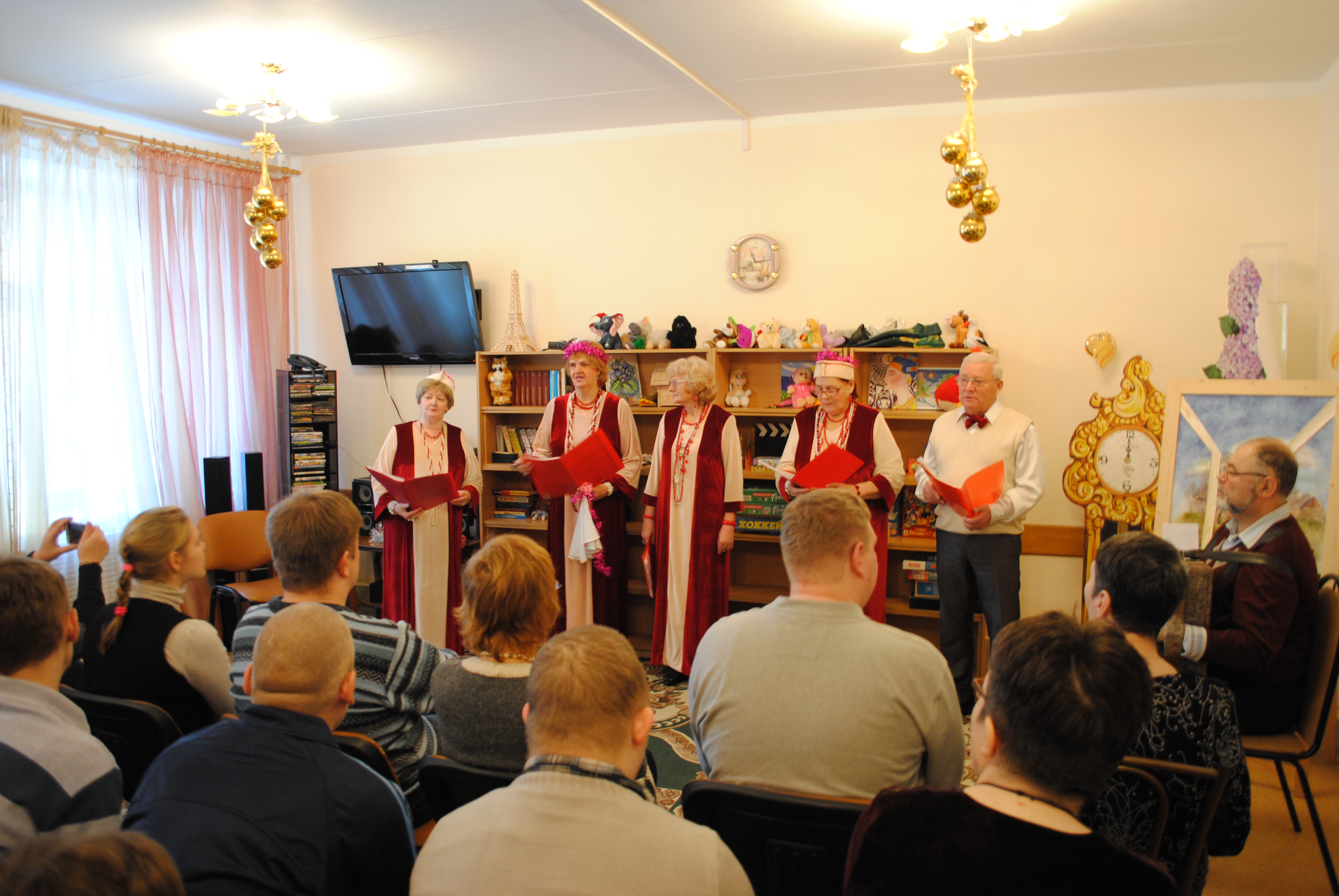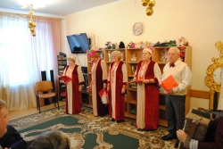 14 декабря 2016г. | Праздничное настроение каждый день! В общих отделениях и отделениях милосердия интерната прошло новогоднее выступление творческого коллектива получателей социальных услуг "До-Ми-Солька". Драматерапия - одно из любимых направлений участников коллектива, который совместно с психологами учреждения занимается в арт-терапевтической мастерской. |