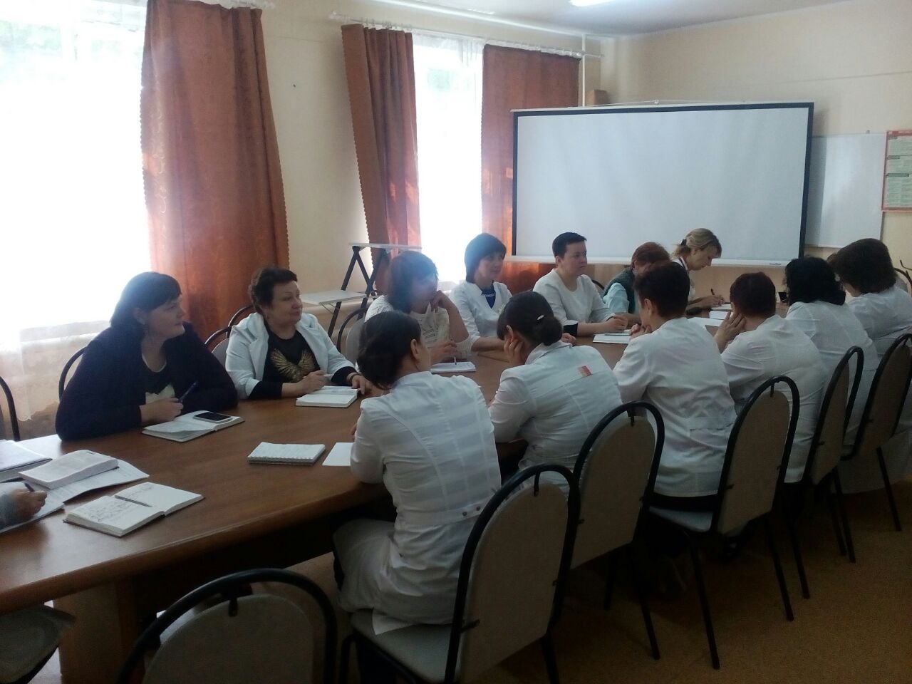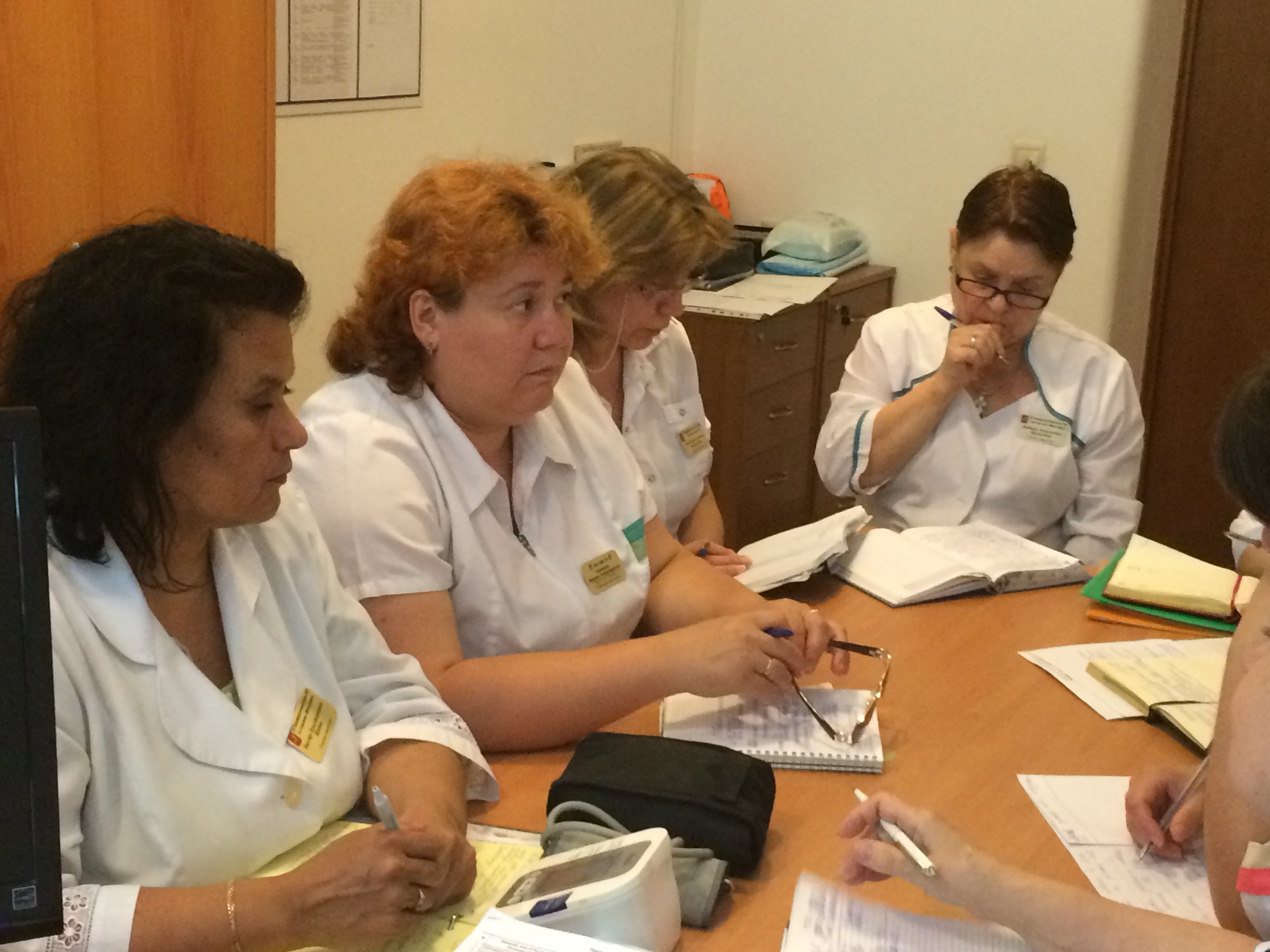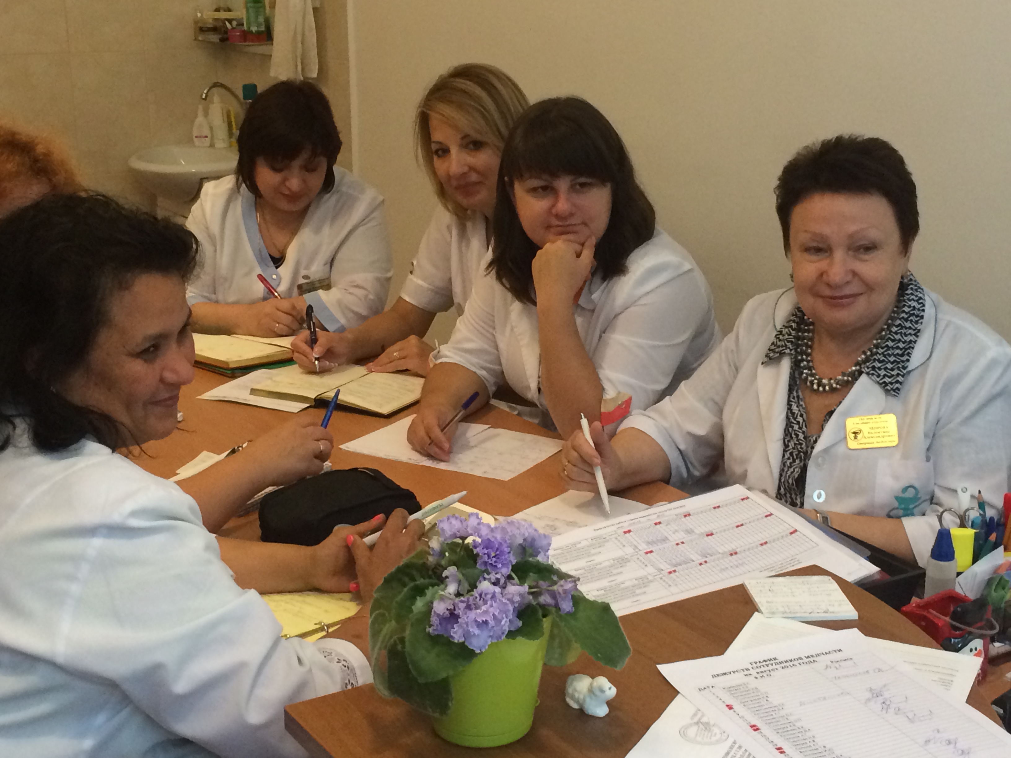 | 15 июля 2016г. | Главная медсестра учреждения Филаткина Н.В. провела плановое заседание Совета сестер, на котором присутствовали старшие медсестры отделений. На повестке дня обсуждались вопросы организации работы приемно-карантинного отделения, санитарно-эпидемиологический режим, порядок и условия приема получателей социальных услуг. На совещании присутствовал заместитель директора по медико-социальной работе Иванов В.В., который помог разобраться в сложных вопросах и отработать единый алгоритм действий. |
