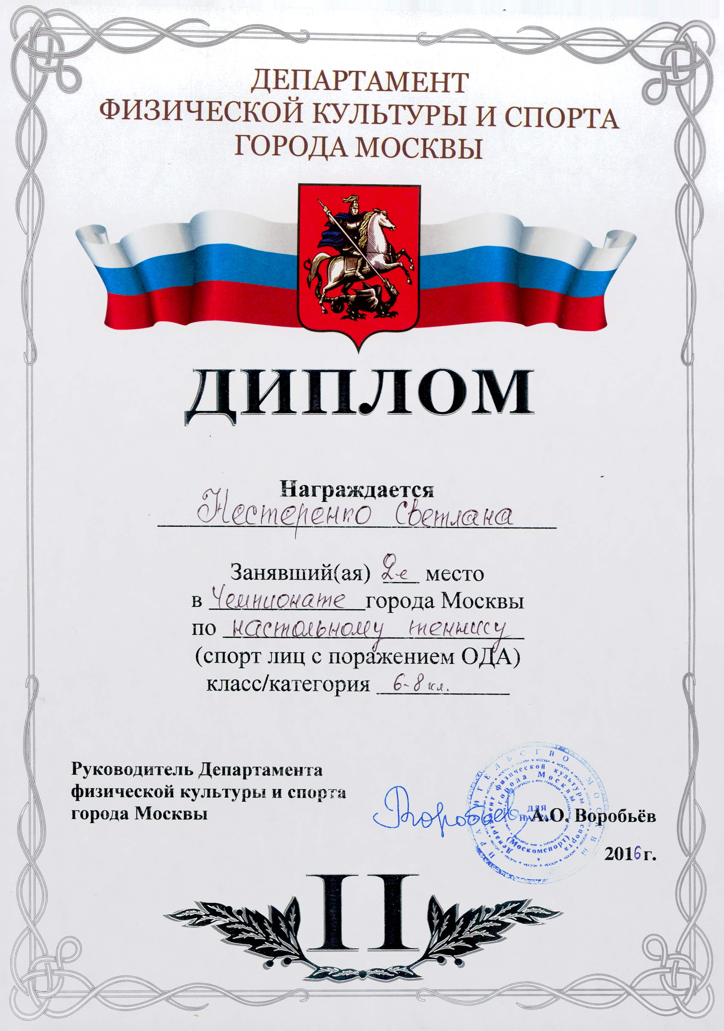| 27-28 февраля 2016г. | В спорткомплексе "Крылатские холмы" прошёл чемпионат Москвы по настольному тенису среди лиц с поражением опорно-двигательного аппарата. У нас второе место! |