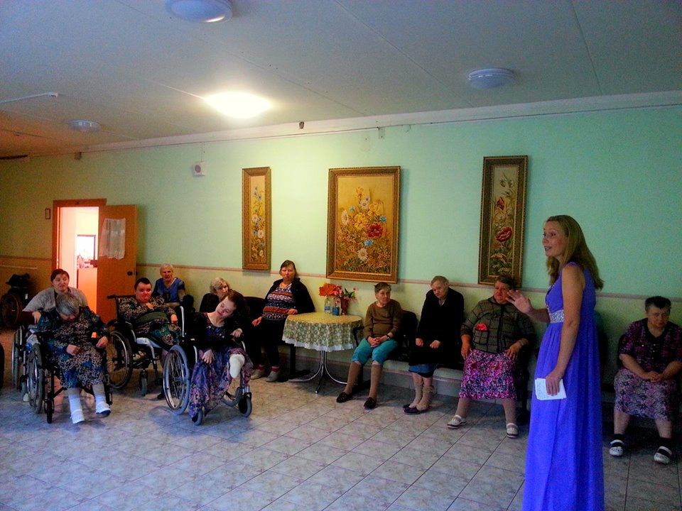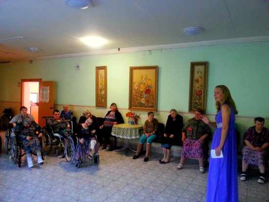 | 30 ноября 2017г. | В последний день осени поздравить именинников ноября в наш интернат приехала профессиональная певица Ольга Головлева. Она не первый раз приезжает к нам с концертами. Актовый зал интерната был полон получателями социальных услуг, которые с удовольствием слушали артистку, подпевали ей, танцевали под ее песни. В ее репертуаре романсы, русские народные песни и популярные песни, полюбившиеся зрителям. Также Ольга Головлева побывала с концертом в отделениях, где получатели социальных услуг в просторных рекреациях смогли увидеть концерт артистки. Бурными аплодисментами они благодарили ее, пожелали здоровья и творческого успеха. |
