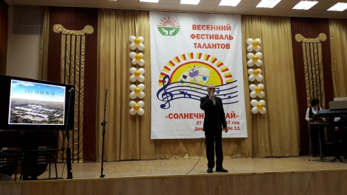 | 27 апреля 2017г. | Яркое, светлое, доброе мероприятие состоялось в ГБУ ПНИ № 11 – Фестиваль талантов «Солнечный май», посвящённый празднованию Дня Весны и Труда. Нашим интернатом была представлена песня «Вечер на рейде» в исполнении Павла Марказьяна. Он был награждён грамотой и почётным знаком фестиваля. Зрители и участники концерта получили море положительных эмоций. Ребята встретили на празднике много друзей, после концерта фотографировались и вместе танцевали на дискотеке. |