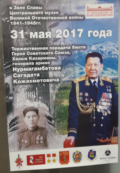 | 31 мая 2017г. | Сотрудники интерната присутствовали в музее Великой Отечественной войны на Поклонной горе в "Зале Славы", где прошла торжественная церемония по передаче бронзового бюста национального героя Казахстана, генерала армии, Героя Советского Союза, Халык Кахарманы, первого министра обороны независимого Казахстана Сагадата Кожахметовича Нурмагамбетова. В этом мероприятии приняли участие Герои Советского Союза, Герои Российской Федерации, космонавты, ветераны ВОВ, Чрезвычайный и Полномочный посол Республики Казахстан, депутаты Московской Городской Думы, руководители ведущих ветеранских и общественных организаций страны, представители молодёжных организаций, суворовцы, кадеты и московские школьники. |